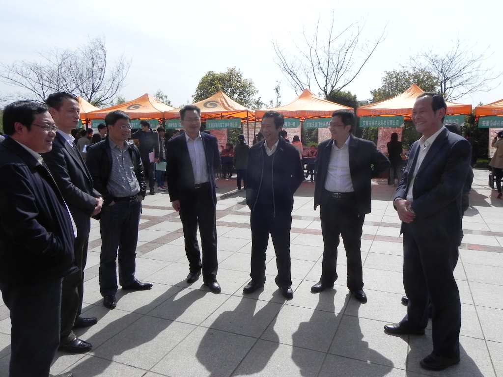 招聘会期间,在学生处处长王河和副处长李卫东的陪同下,副校长李震来到现场与企业、毕业生见面洽谈,督查指导工作,并与黄维群一行就校地、校企合作进行了交流。