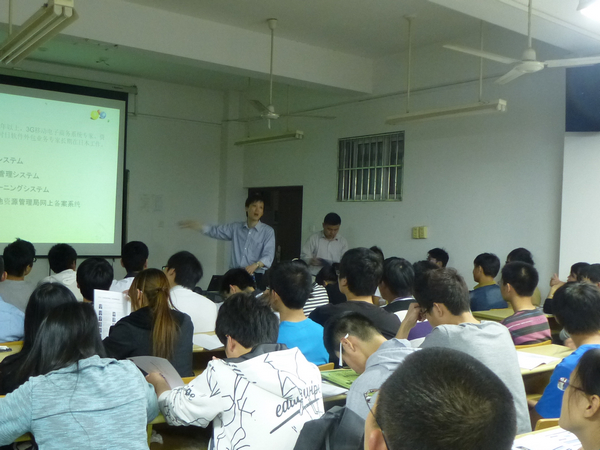 周羽老师向同学们介绍了自己10年来在IT界的经历和心得,着重讲述了IT的过去发展史及“信息技术”的发展前景,他用PPT引领着同学们“回”到了2000年,从“网页界面”、“下载速度”、“e-mail ”、“聊天工具”四个方面详细地向同学们展示了2000年时的IT情景和IT技术,让同学们深刻感受到了十年来IT产业创新带来的行业迅猛发展。周羽老师列举了马化腾、Google创始人谢尔盖-布林和拉里-佩奇、facebook创始人扎克伯格等一些IT界成功人士和他们的IT成功历程,用这些人的经历告诉同学们,努力是成功的基础,选择是成功的催化剂。最后,一段谷歌公司新产品谷歌眼镜的宣传片为大家展现了人类未来的精彩生活和IT科技的美好未来。
