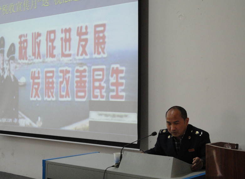 4 月24 日 下午,芜湖市地方税务局来我校为参加创业培训的学生作了以“送税法进高校”为专题的税收宣传报告。财务处负责同志参加了报告会。报告会上,鸠江分局官陡所所长丁美华介绍了税收的用途、征收方式、大学生自主创业享受税收优惠政策等知识,号召大家提高依法纳税意识,做诚实守信的合法公民。