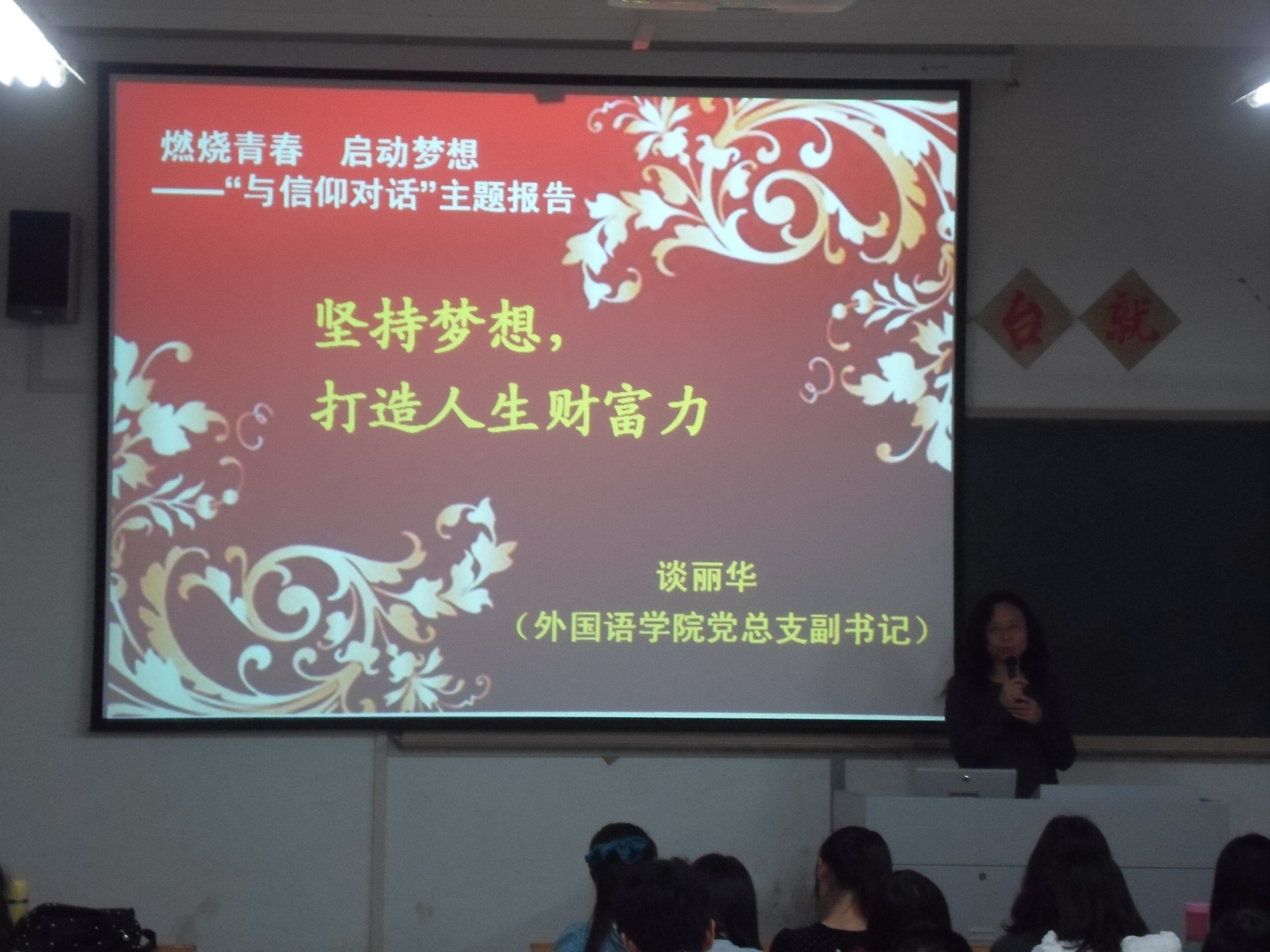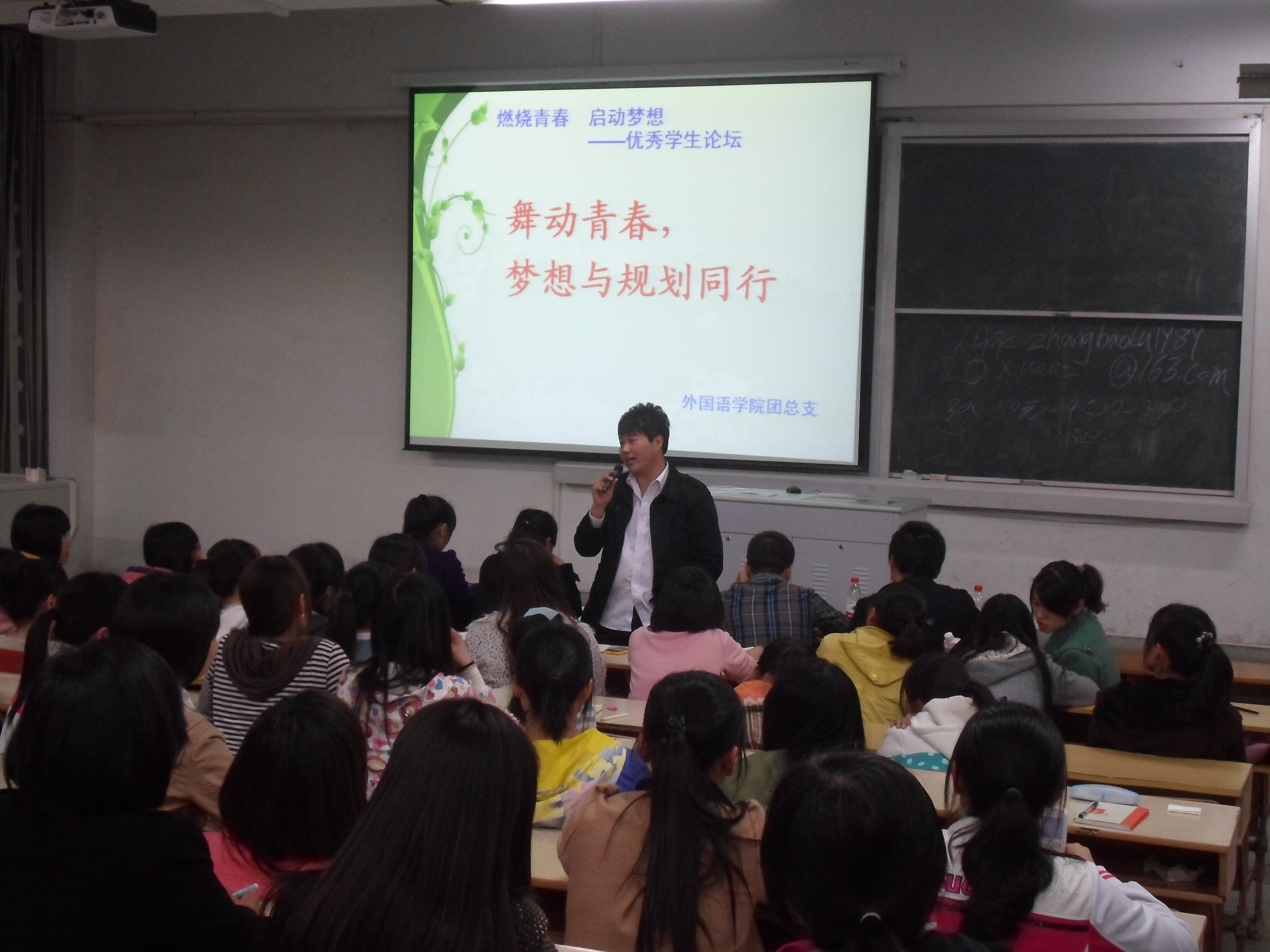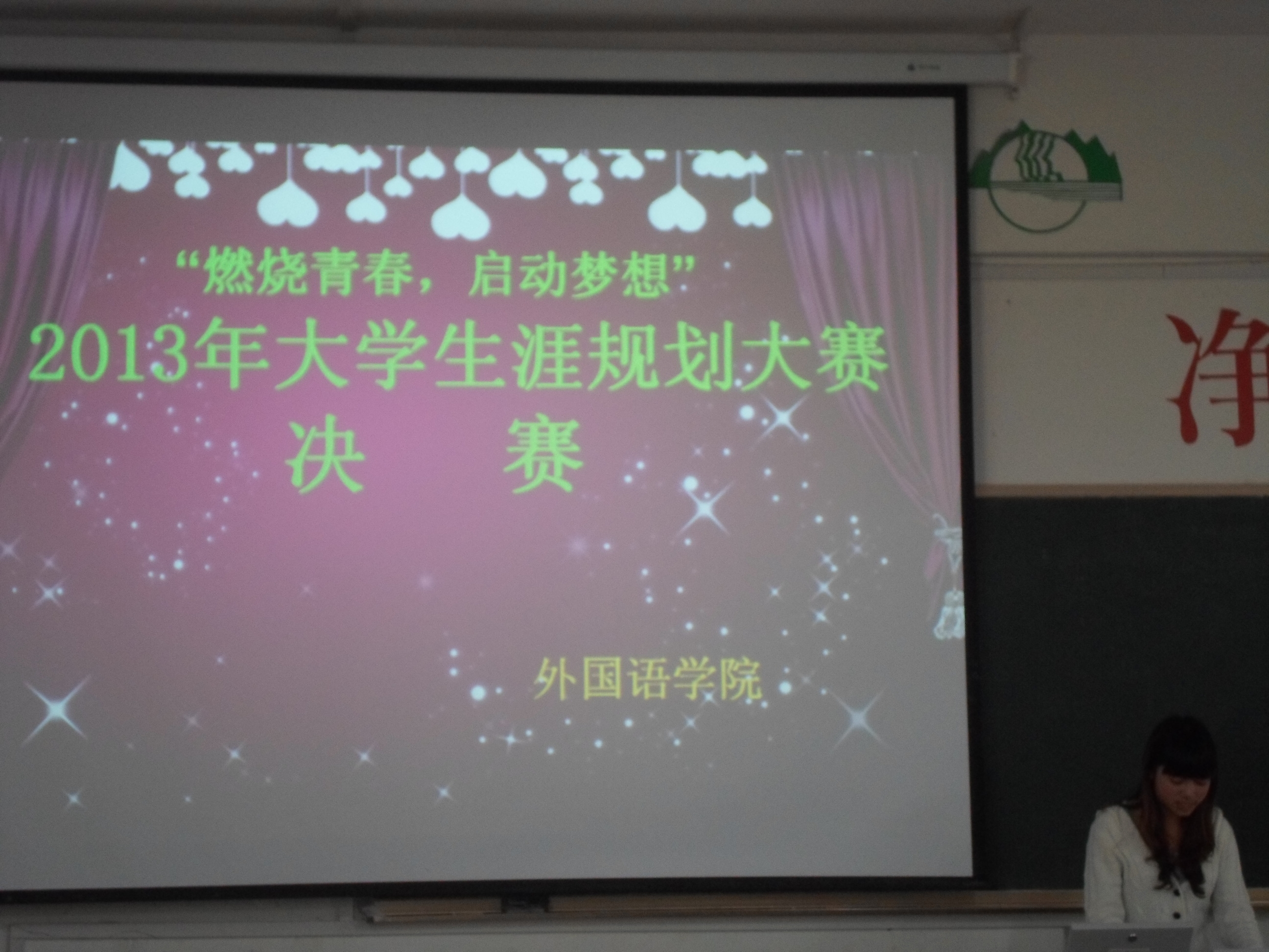 大学生涯规划大赛为外国语学院的品牌活动,旨在帮助大一新生完成角色转变,更有意义地度过大学生活。大赛分为学习交流、设计规划和总结评比三个阶段。第一阶段,由院党总支副书记谈丽华和校友,为2012级学生进行了“坚持梦想,打造人生财富力”和“舞动青春,梦想与规划同行”两场讲座和经验交流;第二阶段,由每位同学根据自身特点,设计出《大学生涯规划书》和PPT汇报稿;经过评选,产生出10位同学进入第三阶段的最后决赛。本次大赛历时近一个月,不仅为同学提供了一个全面展示大学规划的舞台,也让同学们的目标定位更加准确,为以后成就梦想奠定了坚实的基础。