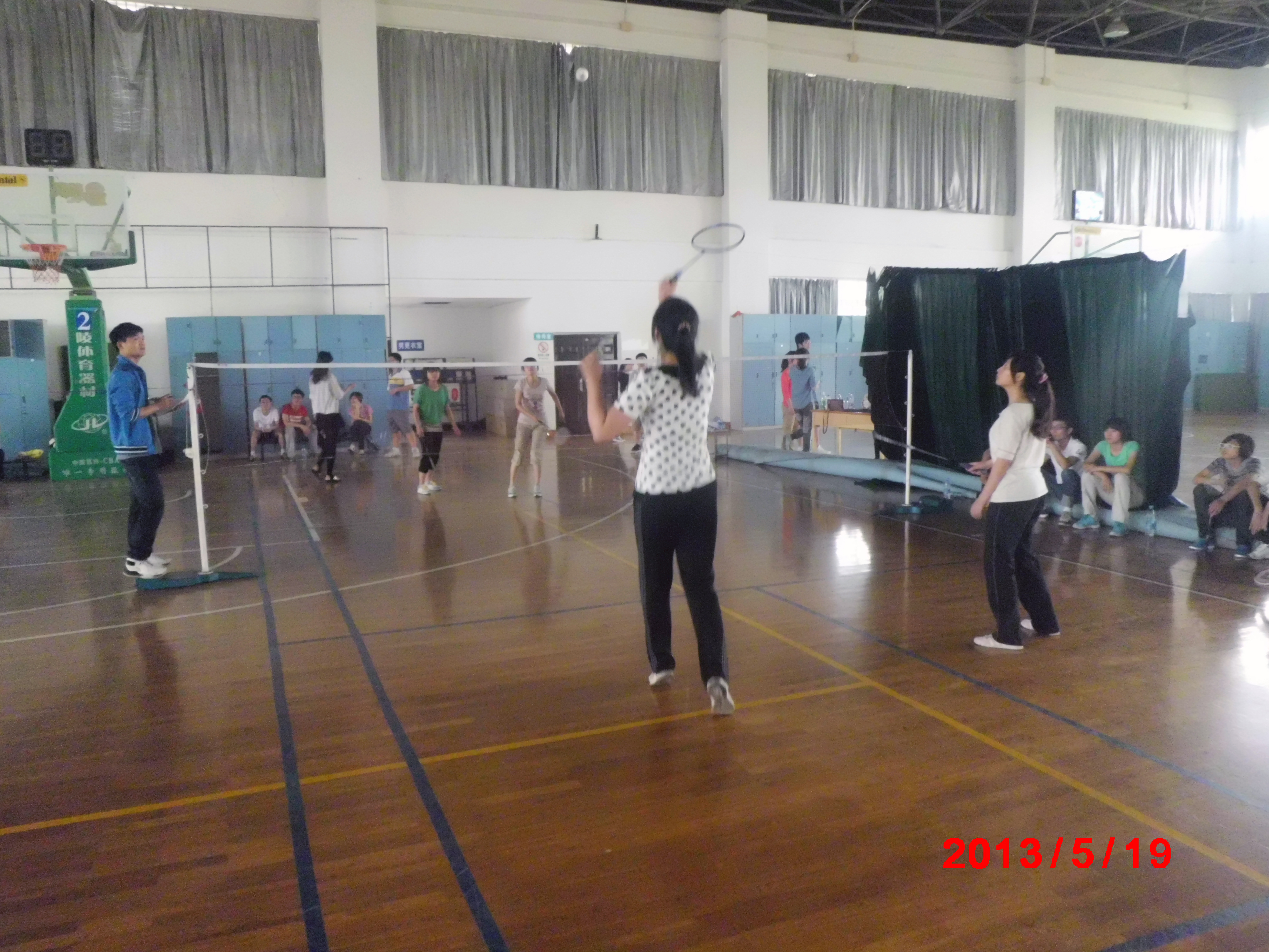 首先进行是团体赛,团体赛采用小组赛,由各班男双、女双和混双分别派出代表,两两对决,以各班积分高低来决出胜负。四个小组的比赛在不同的场地同时进行,在工作人员的安排下比赛有条不紊的进行着。双打中,两位队员配合默契,各守地势,眼不离球,每个人都展现了自己非凡的实力,在场外的同学也为本班参赛选手鼓劲加油。最终,八个班级进入了最后的决赛,决出团体奖第一,第二,第三和最佳组织奖各一个。