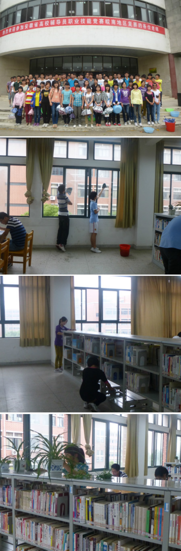 党校学员们被分成三组,大一组负责打扫学校东图书馆,大二组负责打扫西图书馆,大三组负责打扫我院B座六楼机房。分配好任务后,学员们带着自备的抹布和脸盆水桶来到指定的地点,大家分工合作,有的打水,有的擦拭书架、摆放书籍,有的擦拭窗户。考虑到学生在图书馆学习的情况,整个劳动过程安静有序。虽然学员们的身上多了一些灰尘和疲惫之感,但大家感受到了劳动带来的快乐和充实。同时,他们志愿服务、任劳任怨的精神得到了图书馆管理员的好评。