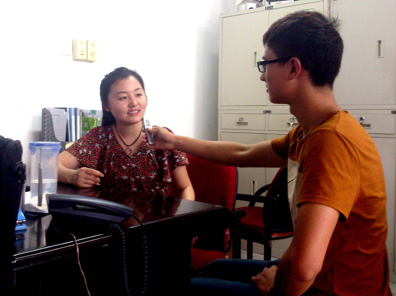 在晚间的播音间里,记者迎来了一位来自艺术学院装潢专业大四毕业生田忠洲。他向记者讲述了大学期间的几个“第一次”。即第一次踏入母校、第一次的熬夜做作业、第一次“卧谈会”等诸多第一次的宝贵回忆,期间不乏感动和怀念之情。当谈到自己毕业最想对老师、学校及学弟学妹讲什么的时候,他说,自己对老师和学校充满感激之情。特别是对母校一步步地改善条件力求给大家营造一个美好的学习和生活氛围很是让人感动,他特别想对教育他四年的老师表示深深的谢意。
