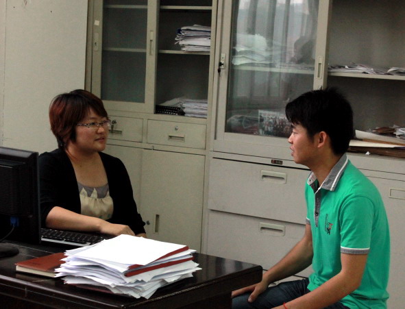 走进数理学院辅导员吴敏办公室,她正在和一位毕业生同学进行交流。吴老师告诉记者,最近还是比较忙的。学生临近毕业了,党组织关系转接、户口迁移、评奖评优等很多工作需要指导和帮助。吴老师介绍说,“在所有工作中,毕业生的安全文明离校问题是我们首要强调的问题。最近我们主要通过班会、微博、QQ等载体与平台对学生进行教育和正确引导,增强大家的安全意识。此外,我们学院开展了文明离校系列活动,充分发挥学生党员的带头作用。我们辅导员也经常到学生宿舍了解毕业生动态,以便发现问题时及时处理”。她说,“做毕业班的辅导员工作很辛苦,但能看到学生学成毕业也很幸福。”谈到各位毕业生的未来,吴老师给予了鼓励与支持,她希望各位同学始终能保持一个良好的心态,积极乐观的面对生活,鼓起大家年轻的斗志,在工作岗位上通过脚踏实地的拼搏展现出各自的风采。”