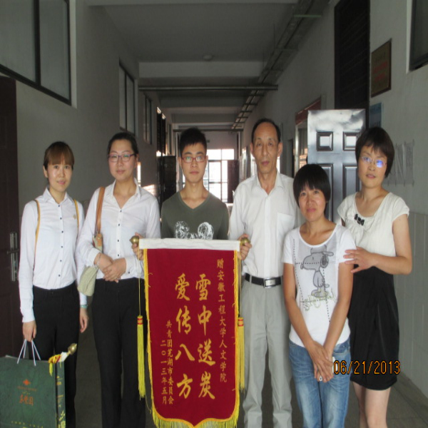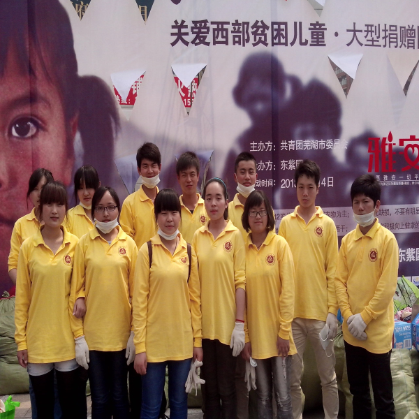5 4 33人文学院“阳光之旅”青年志愿者参加了共青团芜湖市委员会主办,东紫园承办的东爱西行关爱西部留守儿童·大型捐赠圆梦童行募捐活动,志愿者的全力协助使得募捐活动顺利进行并圆满结束。 621,东紫园工作人员代表团市委亲自将雪中送炭,爱传八方锦旗送至人文学院,以表彰“阳光之旅”青年志愿者为此次活动所做的贡献。