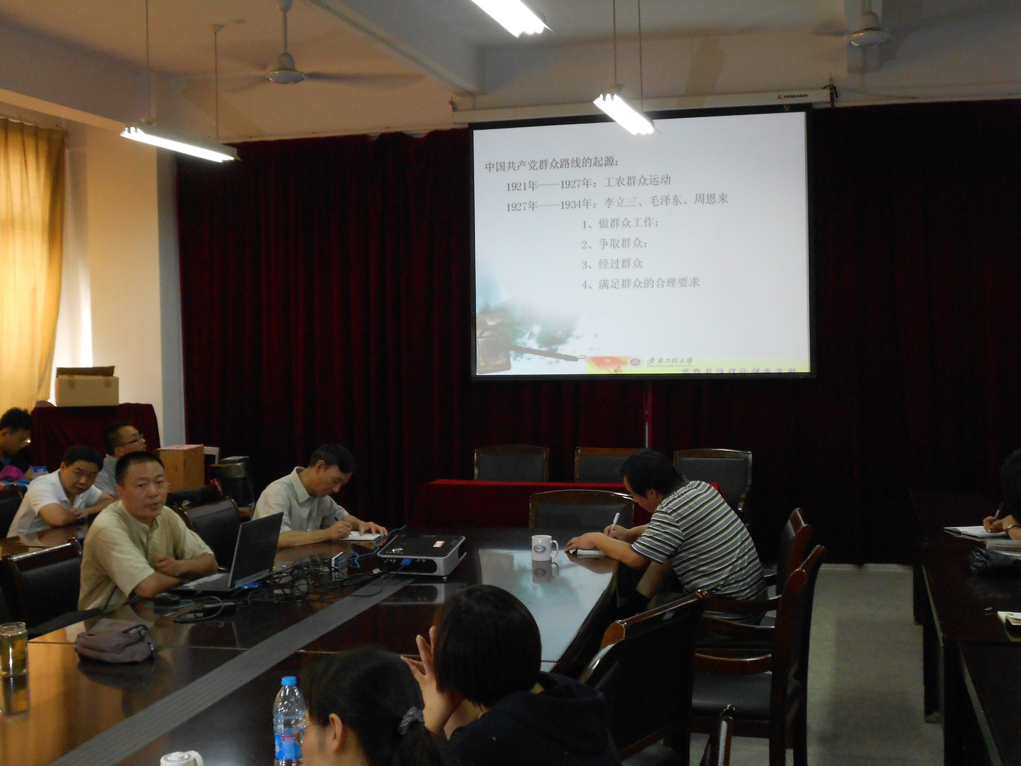 群众路线是毛泽东思想的活的灵魂的三个基本方面之一,是中国共产党最根本的工作路线。坚持党的群众路线,是我们党在长期革命和建设中制胜的法宝。徐东辉老师围绕中国共产党“一切为了群众,一切依靠群众;从群众中来,到群众中去”的群众路线,结合党的群众路线的形成和发展历程,阐述了群众路线的丰富内涵和现实意义,为学院教工党员上了一堂生动的理论教育课。会后,党员教师纷纷表示受益匪浅。