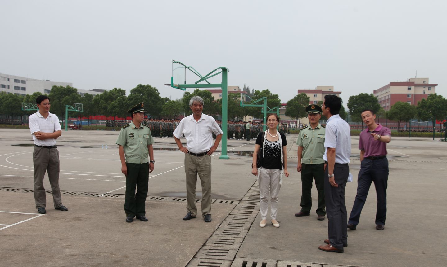下午,校党委书记陈其工、党委副书记苏国红在学生处处长王河陪同下来到2013级新生军训现场看望慰问了参加军训的官兵。陈其工详细了解了军训的安排情况,对承训部队表示感谢,并要求学生处全力做好参训武警官兵的后勤保障工作。同时,他希望全体参训学生克服困难,认真训练,磨练意志,努力展现2013级新生良好的组织纪律性和昂扬的精神面貌。