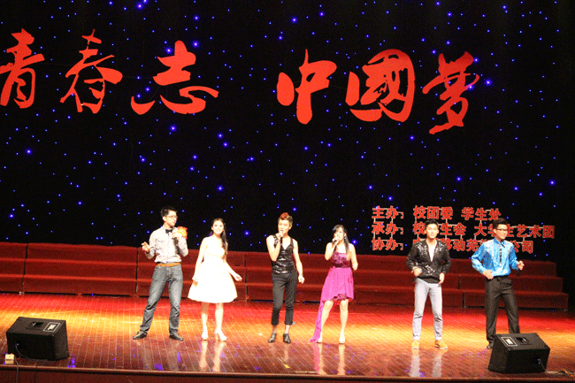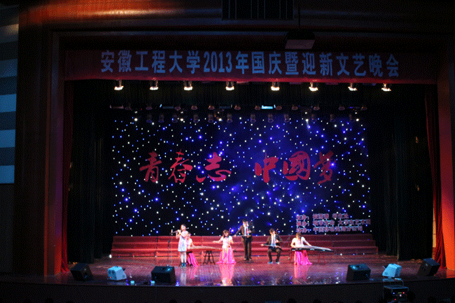 放飞梦想,奏响青春华美乐章;满怀豪情,歌颂祖国繁荣富强。9月28日晚,师生活动中心华灯齐放,流光溢彩,由校团委、校学生处主办,校学生会、大学生艺术团承办的2013年国庆暨迎新晚会在此华丽上演。校长刘宁、副校长李震、校党委副书记苏国红、副校长郭兴众以及各职能部门、各学院负责同志亲临现场,同师生一同观看了演出。