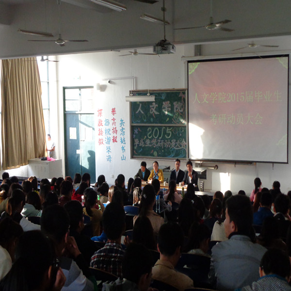 为了调动大家的考研积极性,让学生们进一步明确个人未来的目标和发展方向,更加全面了解考研的形势和备考安排,人文学院2015届毕业生考研动员会于