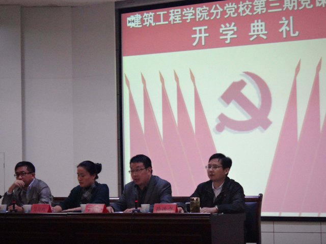 10月17日下午,建筑工程学院分党校第三期入党积极分子培训班开学典礼在学术报告厅举行,校党委组织部副部长王勇智、校党委宣传部副部长吴月红、建筑工程学院党总支书记徐达奇出席了开班仪式,大会由院党总支副书记李烨主持。