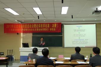 2013年10月28日,由安徽省委教育工委主办、安徽大学承办的全省高校思政课教学比赛(决赛)落下帷幕,来自39所高校的共53名选手参加了本次决赛。我校思政部三位教师经过两天激烈的角逐,表现优异,获得两个二等奖,一个三等奖。