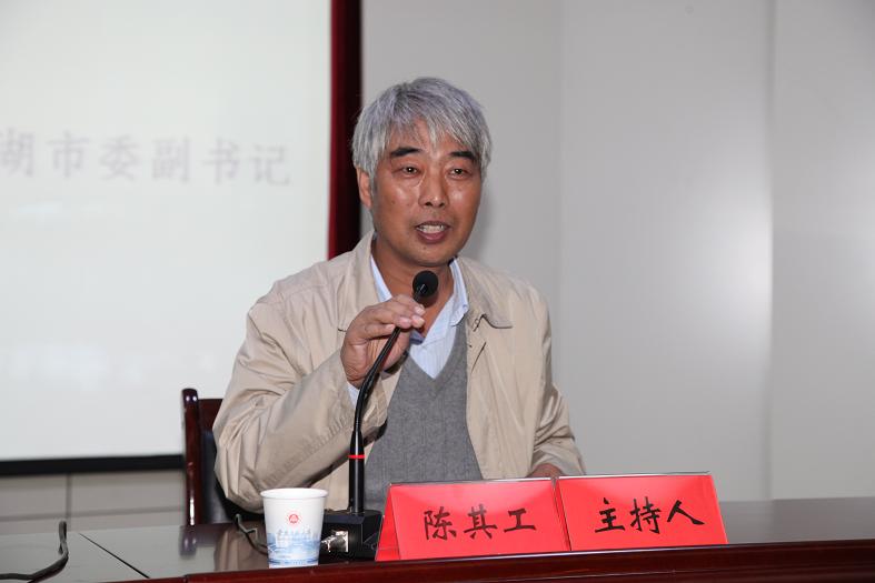 陈其工代表学校对雍成瀚来校作报告表示了热烈的欢迎。他说,雍成瀚副书记专程来校给广大党员干部作报告,这既是一次接受党性党纪教育的好机会,也是加强市校交流合作的好平台,希望在座的我校党员干部,结合雍成瀚副书记的精彩报告,围绕党代会确定的目标任务,切实推进党的群众路线教育实践活动,以为民务实清廉的作风赢得师生信任、推动学校发展;把握机会,加强沟通,不断提升主动服务芜湖经济社会发展的深度与广度。最后,他还用习近平总书记提出的“信念坚定、为民服务、勤政务实、敢于担当、清正廉洁”20字好干部标准与大家共勉。