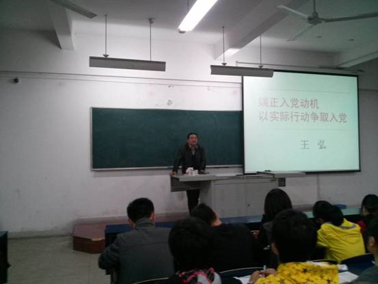 随后,王弘指出本期党校学习的三大任务:一是帮助入党积极分子系统掌握党的基本知识;二是帮助入党积极分子不断端正入党动机;三是帮助入党积极分子深入理解党员的标准。同时他对党校学员提出三点希望:希望广大学员提高认识,端正态度,珍惜学习机会;希望广大学员“学有所思,学有所悟”;希望广大学员积极投身社会实践,做到理论与实践的结合。