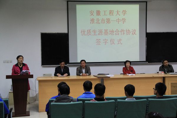 ,校招办一行赴宿城一中、宿州二中、濉溪中学、淮北一中等皖北省示范高中进行“优质生源基地”授牌仪式并开展了活动。我校与各中学签订了合作协议,并在同学们的见证下举行授牌仪式。参与此次活动的学校领导对我校的校园环境、办学理念、培养方向、招生就业等方面给予高度评价,纷纷表示一定全力支持我校招生工作,为我校输送更多优秀毕业生,同时希望以此次授牌仪式为契机,进一步加强与我校在招生、科技创新、科普讲座等方面的交流与合作。电气工程学院的王冠凌副教授还在几所中学进行了精彩的“学生创新能力培养”知识讲座,深受学生欢迎。