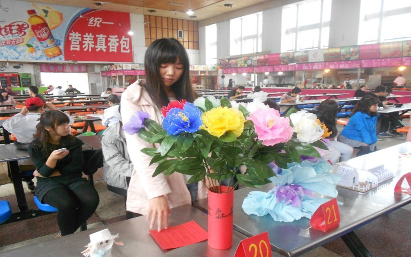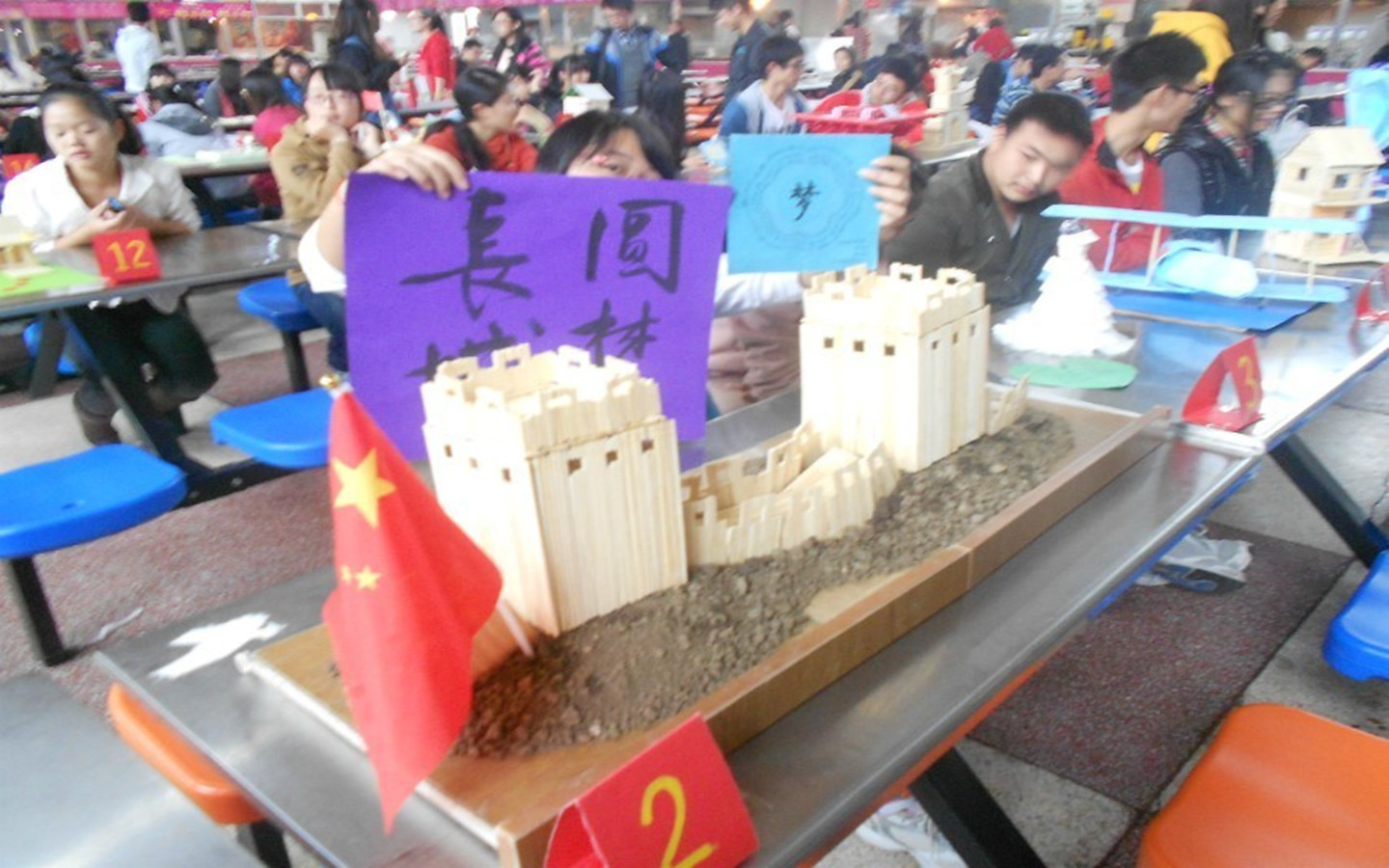 为加强大学生的环保节约和资源合理利用意识,提高学生的动手和创新能力,管理工程学院举办了以“情系华夏,圆梦中国”为主题的手工艺作品制作大赛,大赛于2013年11月3日下午在第一食堂隆重举行。