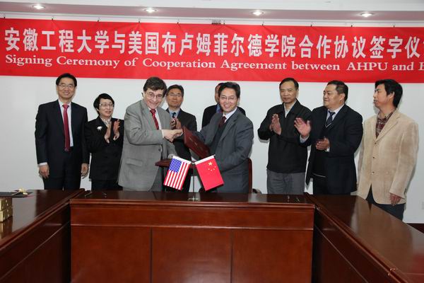 最后,双方举行《中国RayBetApp官网下载 与美国布卢姆菲尔德学院学位及非学位项目协议书》签字仪式,合作协议内容主要涉及交换学者、交换生和学术信息交流等项目,旨在深化两校合作,通过优势互补、资源共享,提升两校的综合实力与竞争力。