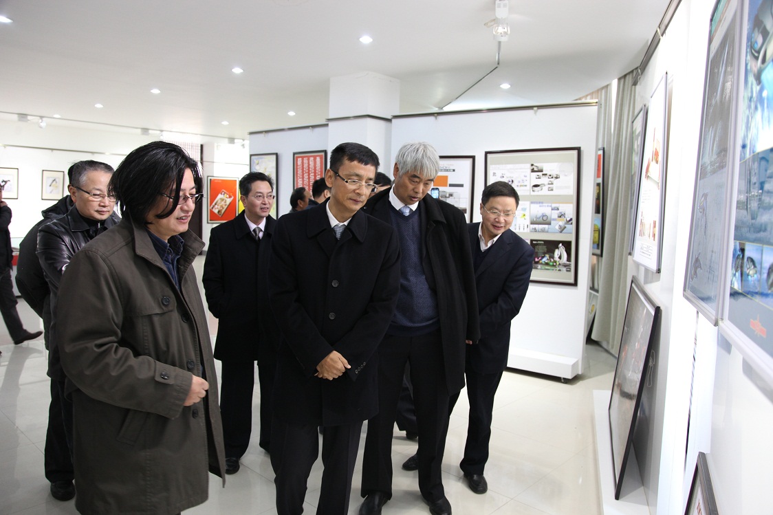捐赠仪式开始前,束龙胜在学校领导的陪同下参观了校园和设计艺术馆。