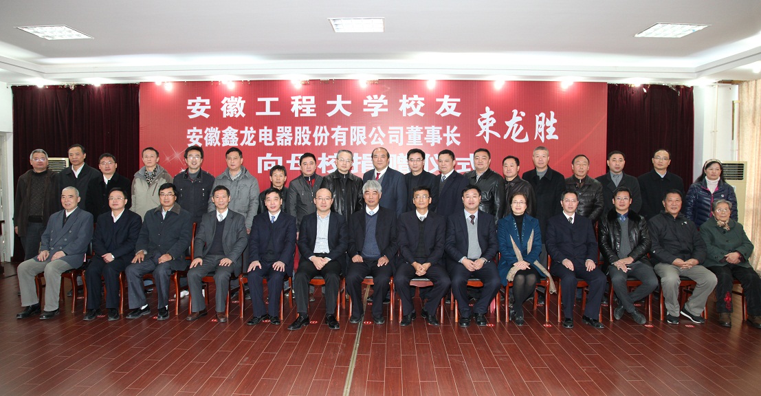 11月28日上午,学校在A座1314会议室举行杰出校友、安徽鑫龙电器股份有限公司董事长束龙胜向母校捐赠仪式。应邀出席捐赠仪式的有芜湖市人民政府副市长汪华东,鑫龙电器股份有限公司12名高管,RayBetApp官网下载 党政领导班子成员、老教师代表、电气工程学院和职能部门负责人及学生代表。副校长郭兴众主持捐赠仪式。
