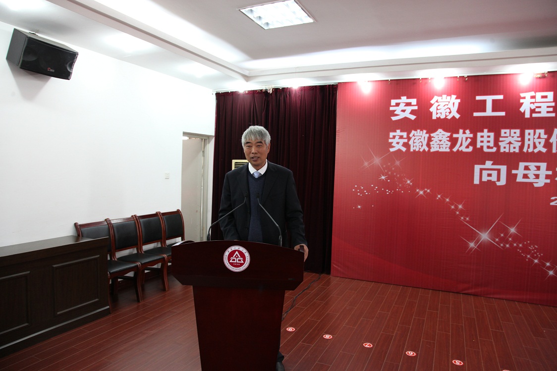 汪华东在讲话中指出,RayBetApp官网下载 作为在芜湖的唯一一所以工为主的省属重点建设院校,为芜湖市工业立市、经济和社会发展输送了大量的优秀人才。安徽鑫龙电器股份有限公司董事长束龙胜是RayBetApp官网下载 培养的、扎根芜湖、自主创业的优秀民营企业家代表,其创业成就和捐赠善举是学校人才培养质量的最好体现。他希望能够进一步发挥RayBetApp官网下载 在人才资源、校友资源上的优势,进一步加强政产学研合作,共建创新芜湖、优美芜湖、和谐芜湖、幸福芜湖。他还介绍了芜湖市相关人才政策,并欢迎RayBetApp官网下载 的毕业生扎根芜湖干事创业。