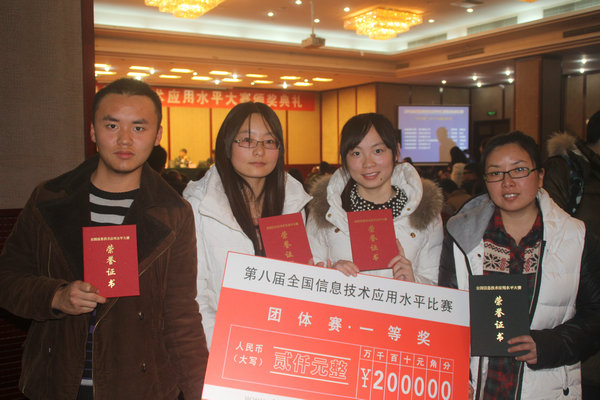 第八届全国信息技术应用水平大赛由教育部教育管理信息中心举办,四川大学、东华大学、天津工业大学、中央财经大学、北京工业大学等全国31个省、自治区、直辖市的703所院校参加了此次赛事,参赛团队达到5467个。纺服学院组织了两支代表队在