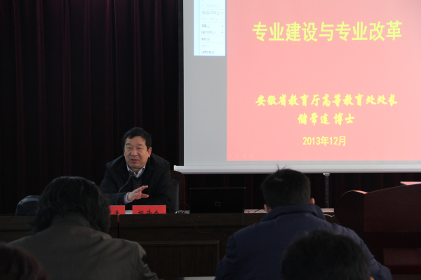 针对今后学校专业发展方向,储常连指出,高校要进一步调整发展思路,由封闭自主发展向开放、合作、创新发展转变,由趋同向分类、多元特色发展转变,积极构建校企合作的育人新机制。他希望学校的目标定位能在适应经济社会发展的基础上充分发挥服务、支撑、引领经济社会发展的作用,支持地方经济发展和产业升级,引领社会进步和文化繁荣,为美好安徽建设作出贡献。
