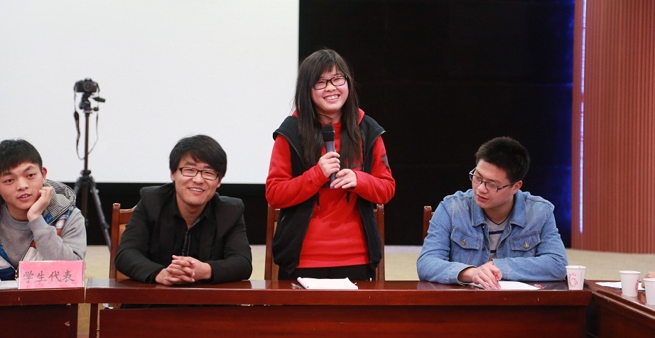 接下来,同学们与校领导、部门领导积极互动,踊跃提问。“1教的用途今后将如何规划?”、“哪些教室今后会安装空调?”、“校内的商家出售假货怎么办?”、“女生宿舍1号和2号楼上下铺结构不方便怎么办”、“学校是否支持送水团业务?”、“大学生创业园将建在哪里?”等一系列问题扑面而来,与会领导认真倾听记录,一一耐心解答。