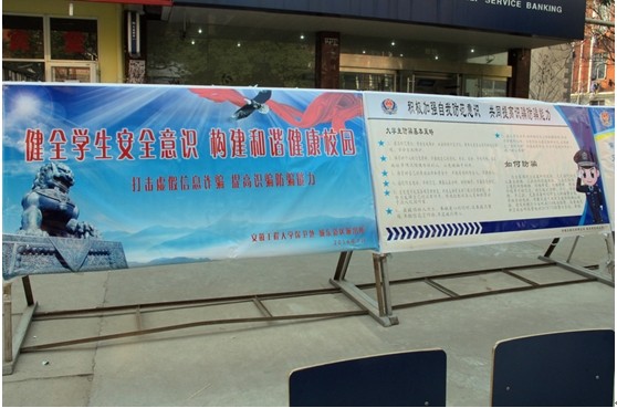 为切实做好学校安全防范教育,提高学生识骗防骗的意识和能力,预防和减少电信、网络诈骗案件的发生,校保卫处和城东新区派出所于3月21-23日在校园内联合开展防范电信网络诈骗犯罪现场宣传活动。
