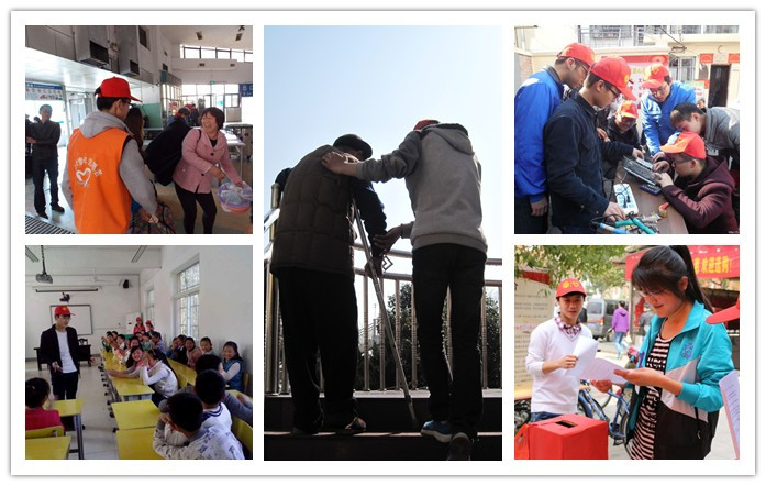 在校园,宿舍楼下,外国语学院团委的“玫瑰花”学雷锋志愿服务团队“一年一元捐 滴水汇涌泉”的活动现场人头攒动;食堂门前,数理学院团委的“迎春花”学雷锋志愿服务团队的“学习生态知识,构建美丽校园”调研活动有序进行;主干道旁,计算机学院团委的“山樱花”义务维修电脑志愿服务团队免费为全校师生维修电脑,方便了他人,幸福了自己;学校门口,建筑工程学院团委的“蒲公英”整理信件志愿服务团队的“信使”们正在忙碌地分发着信件;绿荫林里,环保协会组建的“栀子花”学雷锋志愿服务团队的绿植领养活动,以实际行动呼吁大学生参与生态环保中来;教学楼中,校学生会组织的“蒲公英”学雷锋志愿服务团队在辛苦地清除各种小广告,只为还大家一个舒适干净的课堂。