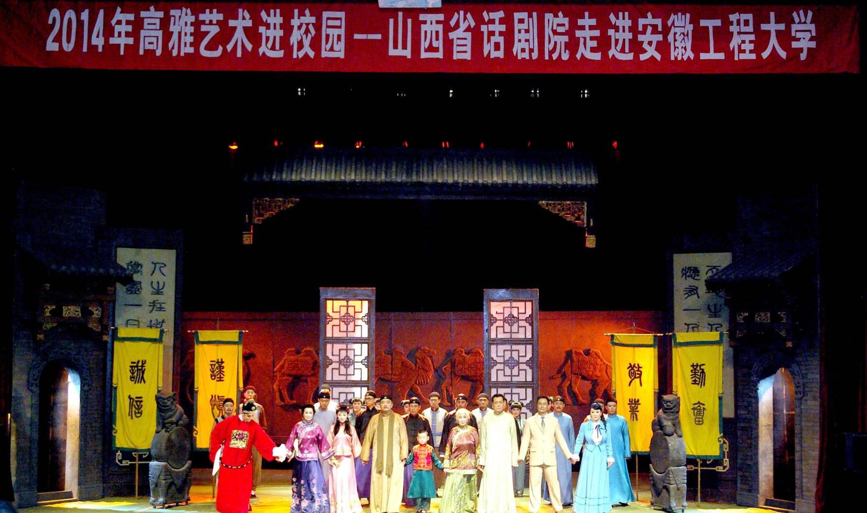 3月26日晚,教育部、文化部、财政部高雅艺术进校园精品剧目《立秋》话剧在我校师生活动中心上演。本场演出是山西省话剧院2014年度“高雅艺术进校园”演出季首场演出,也是该剧面世10年来的第680场演出。山西话剧院副院长王春燕,我校校长刘宁、副校长李震、党委副书记苏国红、副校长郭兴众,省教育厅办公室副主任张尔桂与1400余名师生一道观看了演出。
