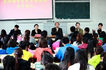 2014年4月2日,数理学院、人文学院第四期学生党员培训班开学典礼在2教107教室顺利举行。校党校、数理学院和人文学院负责人出席典礼,培训班班主任吴敏、李婕以及全体学员参加了典礼。典礼由数理学院党委副书记水心宝主持。