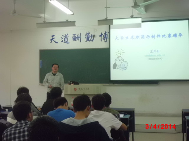 简历制作大赛辅导报告是机械与汽车工程学院大学生职业发展与创新创业活动月的重要内容之一,辅导报告历时一个半小时,在热烈的掌声中圆满结束。