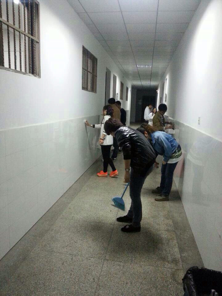 4月11日,学员们前往生化学院实验楼开展志愿服务活动。全体学员在班组长的带领下,手拿扫把、抹布,清扫实验室走廊污垢,清除墙壁印迹,清洗楼梯扶手,清运装修垃圾,使实验室面貌焕然一新,深受老师和广大同学的赞誉。