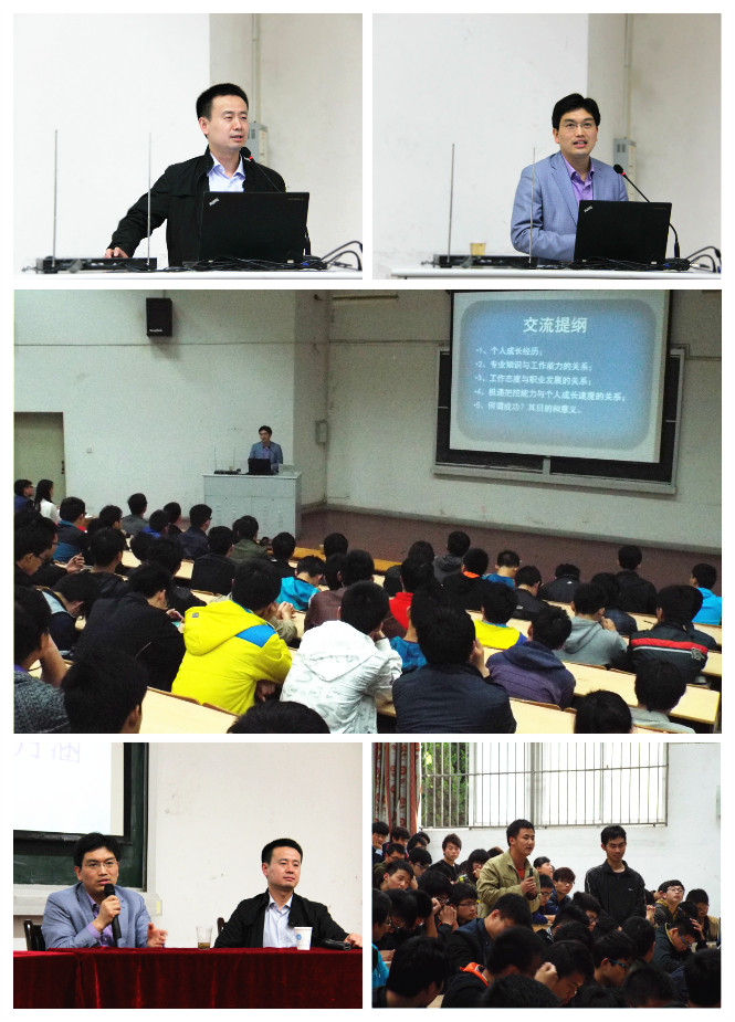 在互动访谈环节,有同学问到“企业在招聘时更青睐哪种类型的学生”,杨汉才认为,具备扎实的专业知识、良好的职业素养以及组织协调与团队合作能力的大学生更受企业青睐,而一个既懂技术又会管理的人,将会获得更多的发展机会和更大的发展空间。当问到“大学生毕业后,就业、考研和创业应该如何选择”时,吴建勋指出,毕业后的选择,应根据自己的兴趣、性格和职业定位来全面分析决策。在详细地列举了三个大学同学就业、考研和创业的案例后,吴建勋强调,每一条职业发展道路都有成功的可能,在慎重选择的基础上,关键要顽强坚持,要学会与企业同命运,共成长。