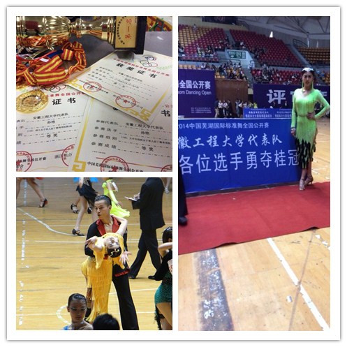 2014中国芜湖体育舞蹈公开赛于5月2日在芜湖市奥体中心隆重举行,我校代表队在比赛中取得了四个一等奖、三个二等奖和两个三等奖的好成绩。