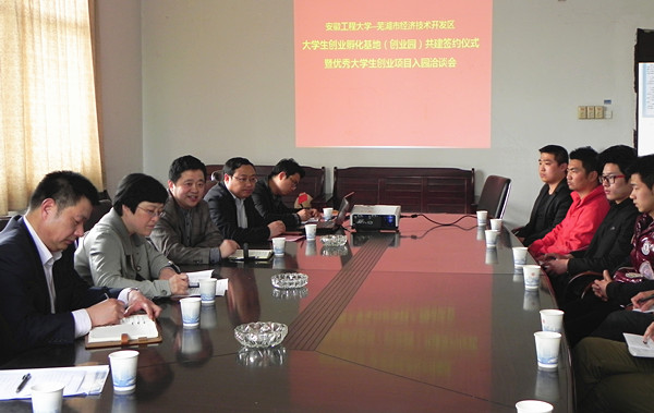以创业计划竞赛为着力点,推进与镜湖区青年创业孵化基地共建合作。3月初,学生处以芜湖市青年创业计划竞赛为契机,与镜湖区人社局深化合作,开展多回合洽谈,不断凝聚共识,并就我校大学生优秀创业计划项目入驻镜湖区青年创业孵化基地达成协议。经过一个月的校内选拔与精心指导,学生处共推荐8组项目参加了本次竞赛。据悉,镜湖区人社局将综合考虑参赛学生意愿和创业计划项目可行性因素,从中选取优质项目直接入驻该区创业园进行孵化。