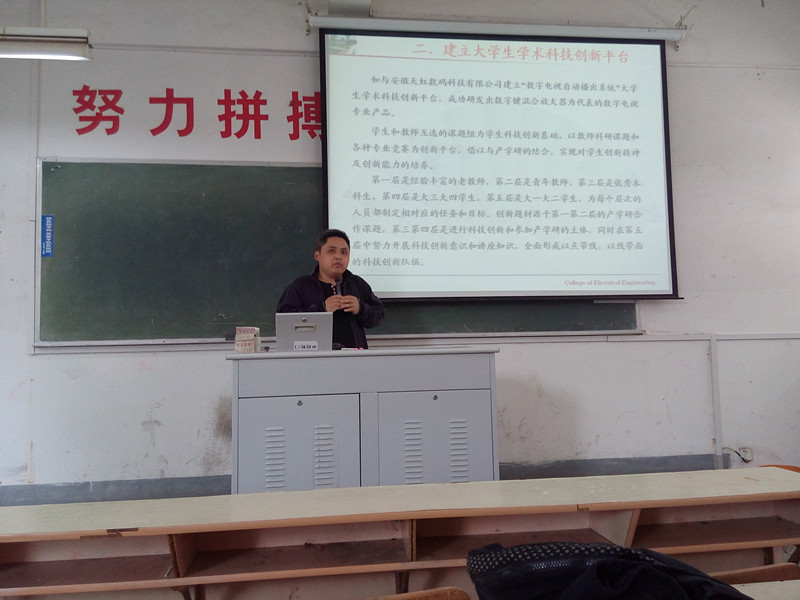为进一步推进我校大学生的创新意识、创造思维和创新实践能力的培养,引导教师积极参与指导大学生课外科技创新与技能竞赛活动,5月7日下午,电气工程学院电子信息工程系举行了由全体教师参加的“大学生创新实践活动经验谈”教师提升计划活动。
