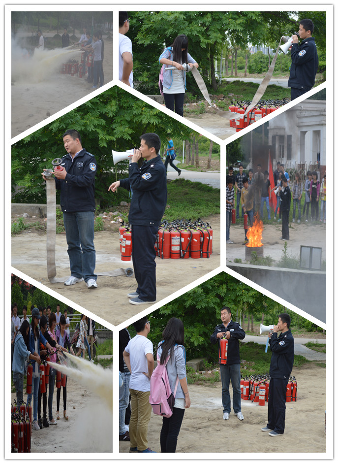 随后,学院还组织寝室长等学生代表80余人参加了灭火演练。保卫处工作人员详细讲解了消防水枪、干粉灭火器使用要领并进行一一演示,参演学生代表按次序在校保卫处消防人员的指导下用干粉灭火器对事先设置的燃烧点进行了灭火实战演练。
