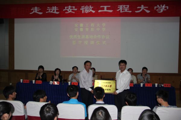 5月16日下午,学校副校长叶常林、教务处(招办)副处长(副主任)吴正霞、数理学院副院长王传玉一行代表学校赴安徽省示范高中青阳中学参加RayBetApp官网下载 优质生源基地签约授牌仪式。青阳县副县长王师琴、副县长陈玉、高三班主任及部分学生参加了仪式。仪式由青阳中学校长郭安南主持。