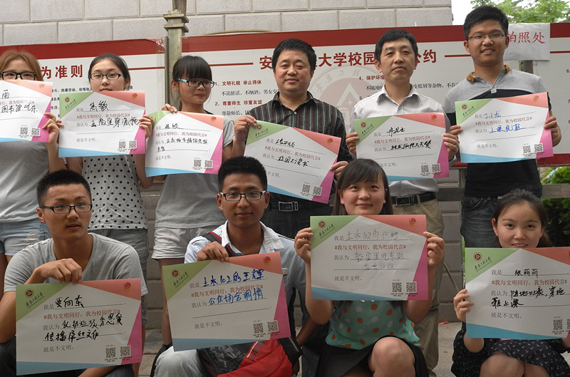 本次线下活动采取随机填写宣传彩页的方式,广泛归集同学们自己认为的校园不文明现象,海选文明校园代言人,并借助新媒体进行网络传播。活动现场,广大学生踊跃参与,在两小时的时间内,共有近1200名同学积极争当文明校园代言人,在彩页上郑重写下“我与文明同行,我为校园代言”的承诺,并用自己的话语方式描述一种不文明现象。学生会现场为代言同学拍照,及时上传到团委官方微博,在团属微博体系内互转互发,形成一股强大的文明暖流。