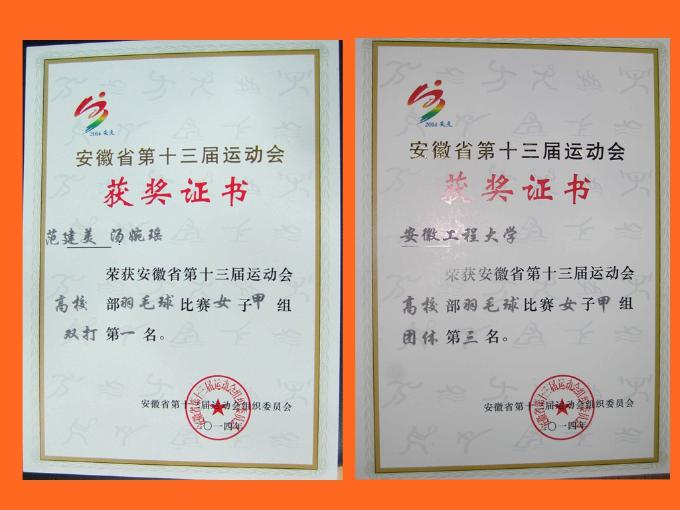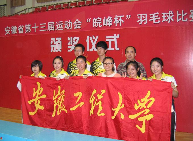 5月23日,安徽省第十三届运动会高校部羽毛球赛比赛在潜山县体育馆落下帷幕。首次组队参加比赛的我校大学生羽毛球队经过奋力拼搏,最终获得了甲组女子双打冠军和女子团体第三名的好成绩,实现了我校羽毛球比赛成绩的历史性突破。