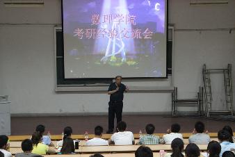 5月29日晚,数理学院2014年考研经验交流会在二教报告厅举行。数理学院院长费为银教授,党委副书记水心宝,学院团委副书记、2011级班级的辅导员以及我院2011、2012级近300名学生参加了交流会。