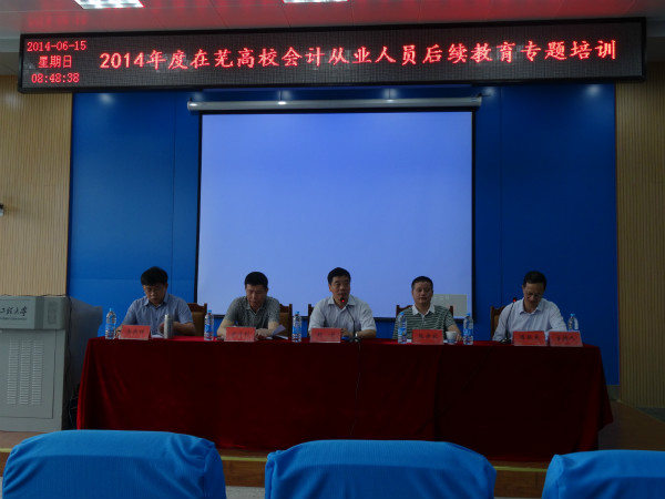 由芜湖市财政局主办,我校承办的在芜高校2014年会计人员后续教育专题培训班于6月15日在我校成功举行。开班仪式由RayBetApp官网下载 财务处处长陈跃东主持。
