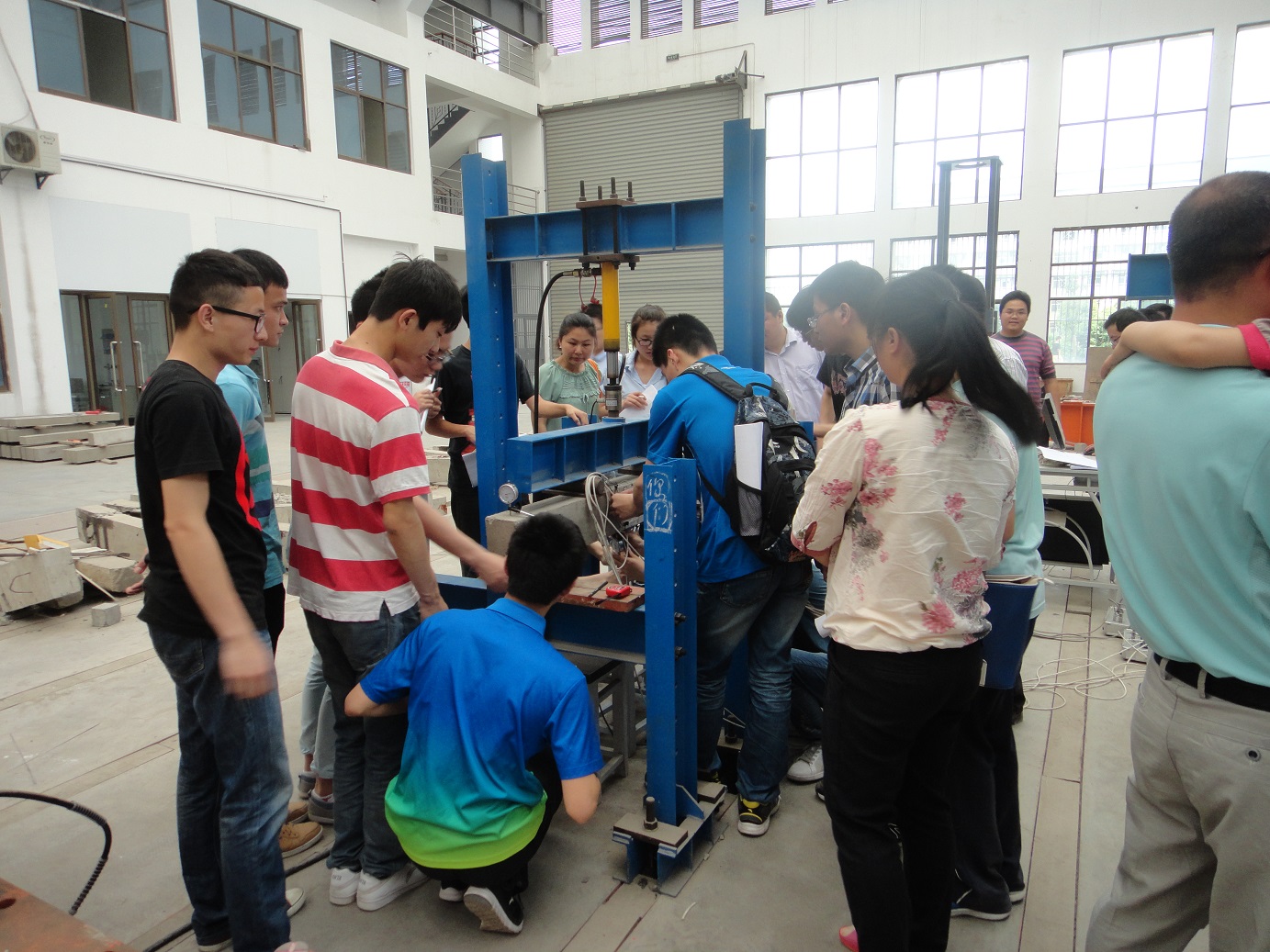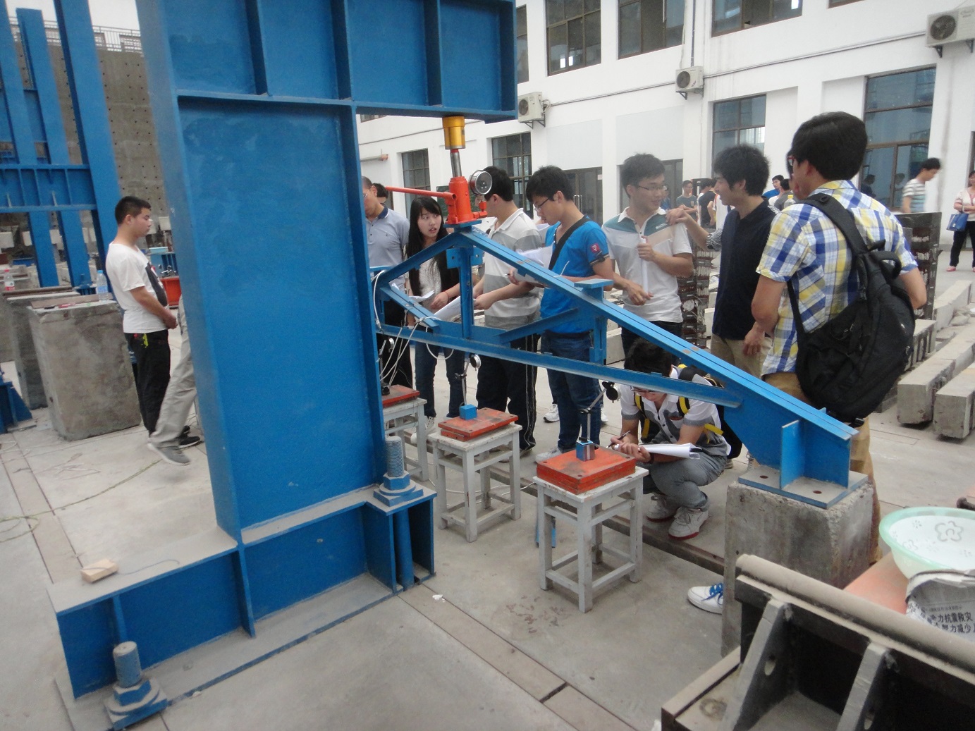 在学校领导及职能部门的关心指导下,经过近两个月的联系及前期实验准备,2014年6月初,学院土木工程专业大三全体学生来到安徽工业大学结构实验室进行了为期两天的结构试验。本次试验让同学们更深入地理解了工程结构的破坏机理,提高了学生的动手能力、分析能力和发现、解决问题的能力,拓展了学生们的视野。