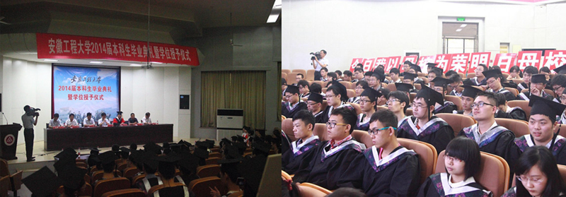在庄严的国歌声中拉开毕业典礼的序幕。张开炳宣读学校授予2014届毕业生学士学位的决定;数理学院学位委员会主任委员费为银教授为毕业生代表颁发了毕业证书和学位证书并扶正流苏。王传玉宣读获得学校2014届优秀毕业生和2013—2014学年度毕业生先进个人的决定,主席台领导为获得表彰的毕业生代表颁了奖。