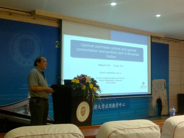 我校费为银教授受邀作了题为“Optimal stochastic control and optimal consumption and portfolio with G-Brownian motion”的大会报告,在报告中费为银教授首次提出G-Brown运动环境下的最大化原理,并讨论了奈特不确定环境下最优消费与投资问题。