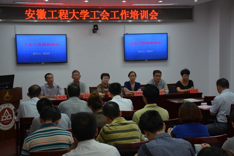 为加强工会干部队伍建设,进一步做好工会工作,校工会于8月24日下午在A座教学楼1121举办工会工作培训会。培训会特邀了省教育工会主席夏建华,原中国科技大学工会主席、省教育工会高校工会教代会研究会理事长龚建平教授分别作了《工会工作形势报告》和《工会的历史回顾与思考》两场讲座。党委副书记苏国红,组织部长以及校工会负责人出席会议。校工会委员会委员,专职工会干部,各分工会主席、副主席和专门委员会主任、副主任共计50余人参加了培训学习。校工会主席王河主持培训会。