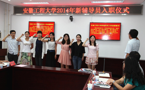 入职仪式结束后,学工部从辅导员的共青团工作、新生心理健康教育、学生资助管理、学生档案管理、工作技巧等方面组织安排了岗前培训。