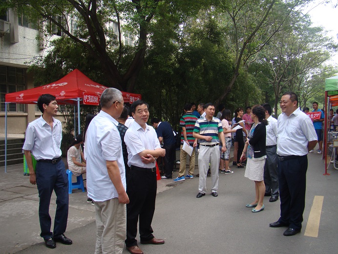 9月6日上午,校长刘宁、校党委副书记苏国红,校教务处处长陶庭先、校办主任王弘和校学生处处长张开炳一行来我院看望迎新工作人员、了解新生报到情况。