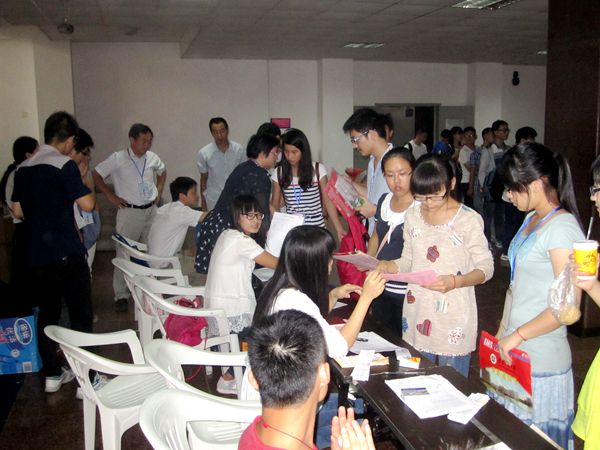 迎新工作人员和学生志愿者们热情洋溢,他们以真诚的微笑与贴心的服务感染着新生,希望2014级新同学能够感受到亲切温馨的氛围,更快地融入到计算机与信息学院这个大集体中来。