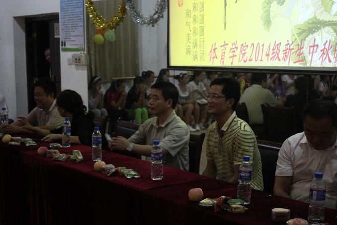 9月8日晚,体育学院在练功房举办了一场2014级新生中秋联欢会,校长刘宁、校党委副书记苏国红、校办主任王弘、学生处处长张开炳、体育学院党总支书记文才新等领导与教师以及学院2014级全体本科生、研究生共度佳节。